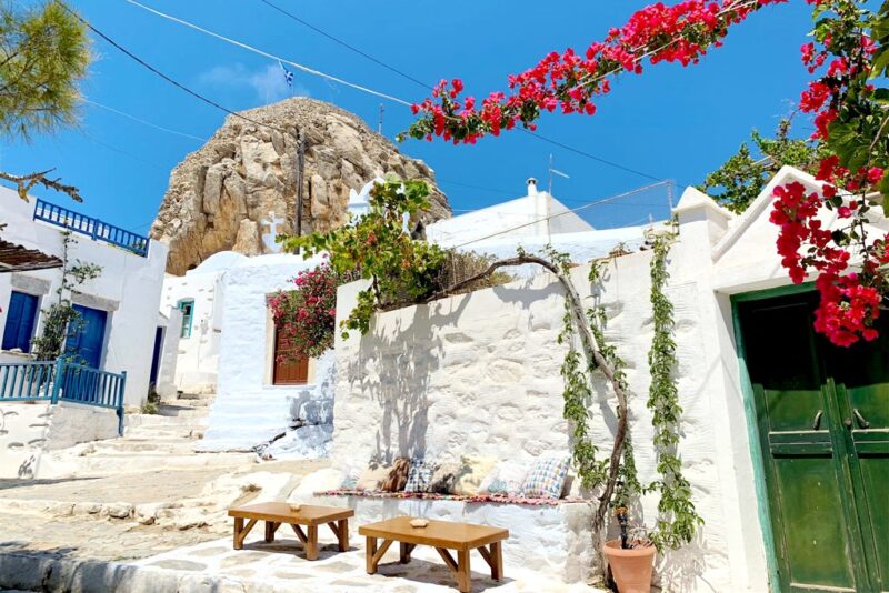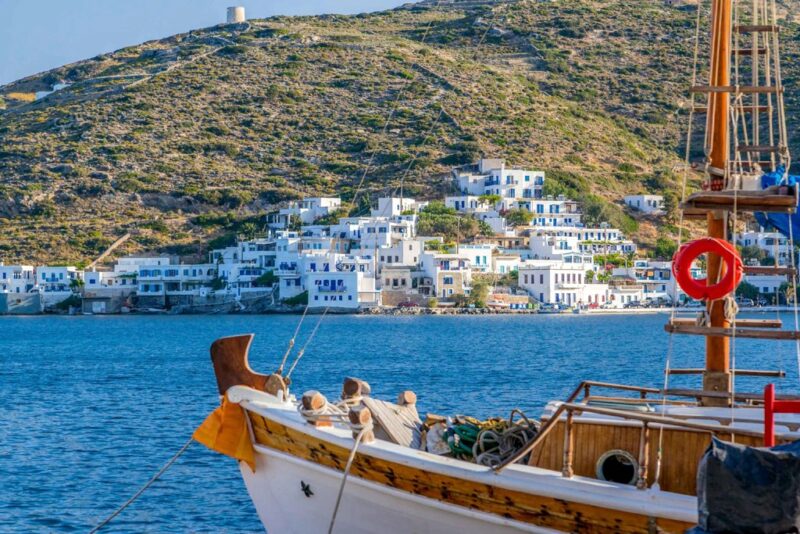While Amorgos remains largely unspoiled, you’ll find a touch of cosmopolitan flair in Aegiali during the summer months — with beach bars, yoga retreats, and sailing boats anchored offshore.