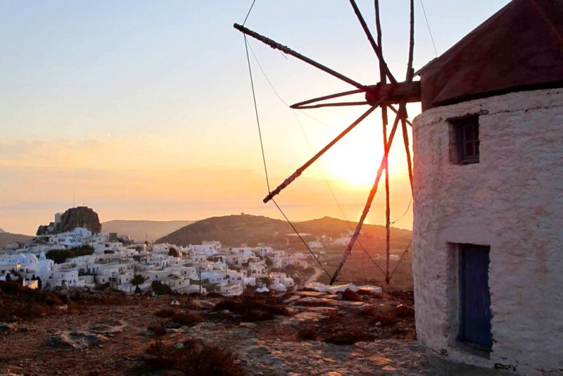 🌅 Наблюдайте закат с ветряных мельниц Хоры — момент, который кажется вечным.