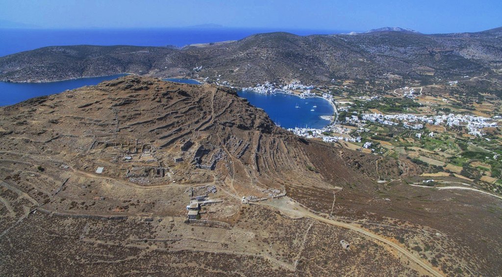 🏺 Исследуйте древнюю Миною, одно из самых ранних поселений Киклад, с видом на залив Катапола.