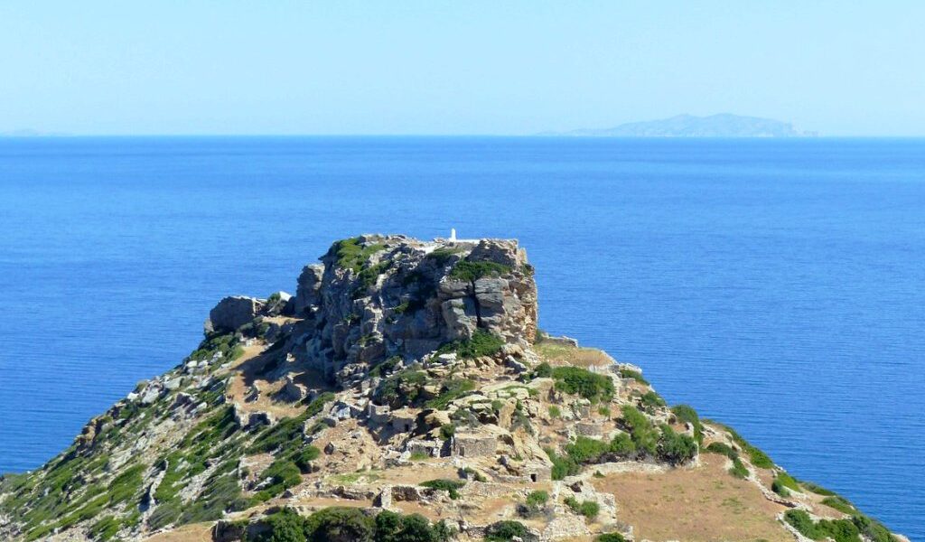 🏺 Исследуйте древнюю Миною, одно из самых ранних поселений Киклад, с видом на залив Катапола.