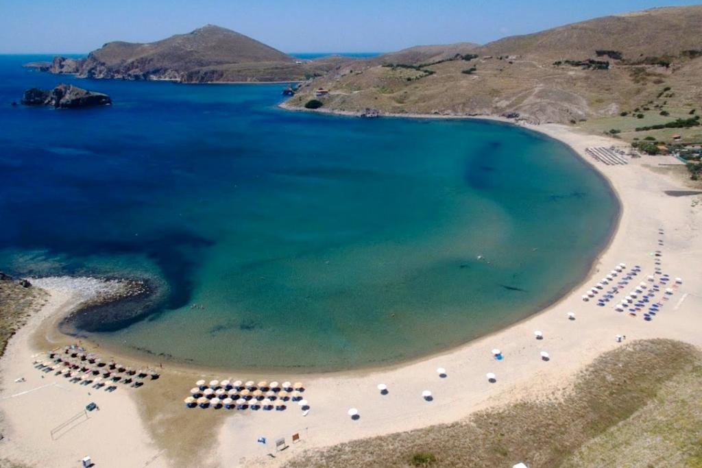 Limnos (or Lemnos), located in the northern Aegean, is surrounded by Samothrace and Thasos to the north; Mount Athos and Halkidiki to the west; the Sporades and Agios Efstratios to the south; and Lesvos and Turkey to the east. Known for its sandy beaches, volcanic hills, authentic villages, and archaeological sites, Limnos offers a unique combination of nature and mythology. The island is home to the ancient myths of Hephaestus and Philoctetes, adding to its charm. Myrina, the capital, is a vibrant town, while the villages of Moudros, Thanos, and Kontias offer a taste of traditional island life. Limnos is also famous for the Dunes of the Ammothines, its windmills, and its waterfalls. The island’s vineyards are renowned, and visitors can even explore an authentic desert landscape!