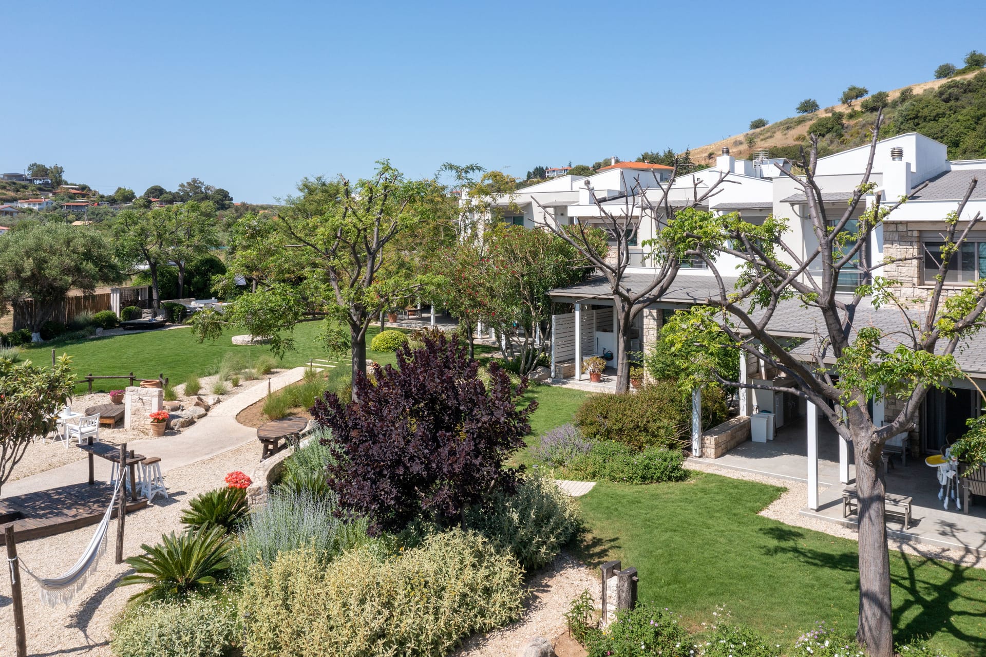 Evergreen outdoor spaces, spacious terraces, and large windows only begin to describe this feeling, complemented by an atmosphere of comfort, luxury, and exquisite taste in the villas' interiors.