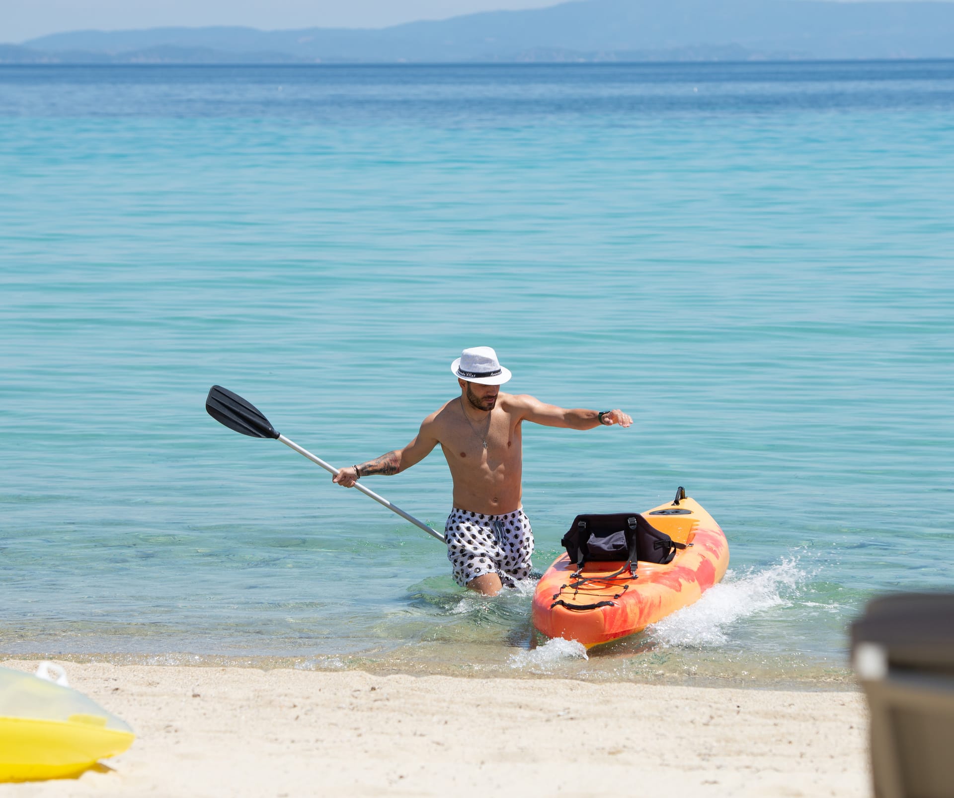 A variety of water sports and equipment are available, including SUPs, double and single kayaks, life jackets for adults and children, and a large basket of beach toys for the little ones.