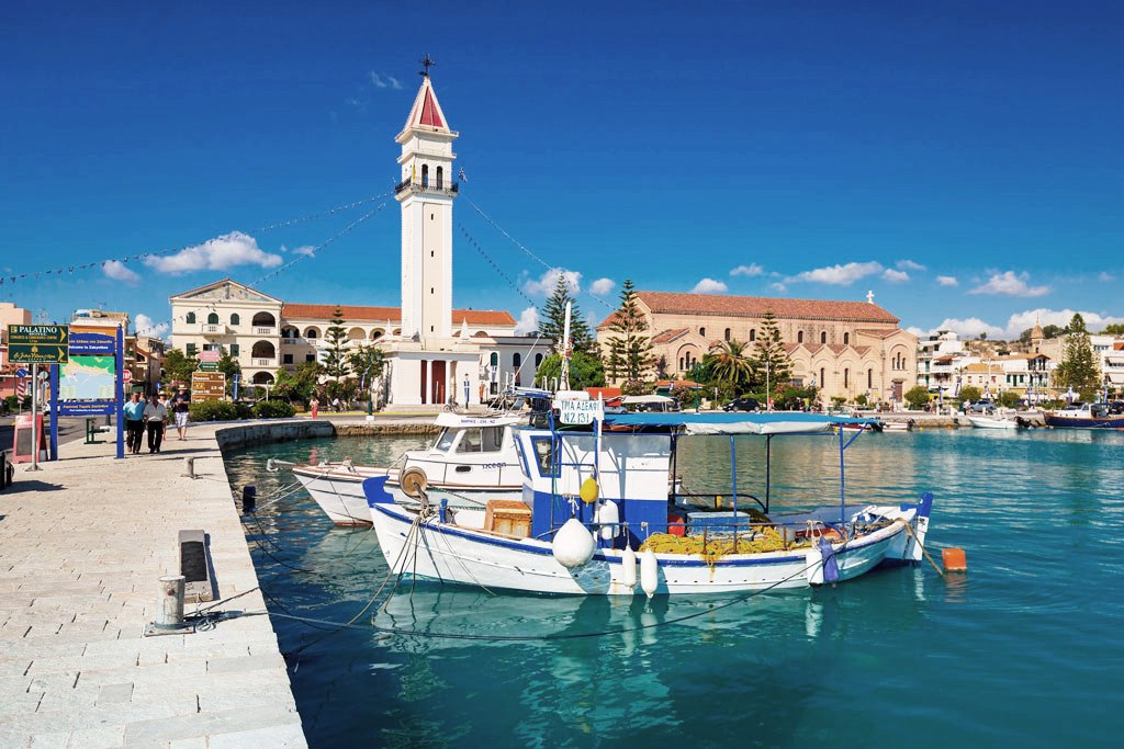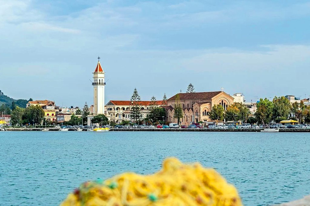 Zakynthos Town, the island's capital and main port, sits at the base of Bochali Hill. The city offers diverse attractions, including the revered church of Agios Dionisios, which houses the saint's relics, various museums, and the characteristic squares of Dionysios Solomos and Agios Markos. Along the waterfront promenade and within the city's charming narrow streets, visitors can explore a captivating area surrounding the ruins of the ancient Venetian castle atop Bochali Hill (also known as Strani Hill)."